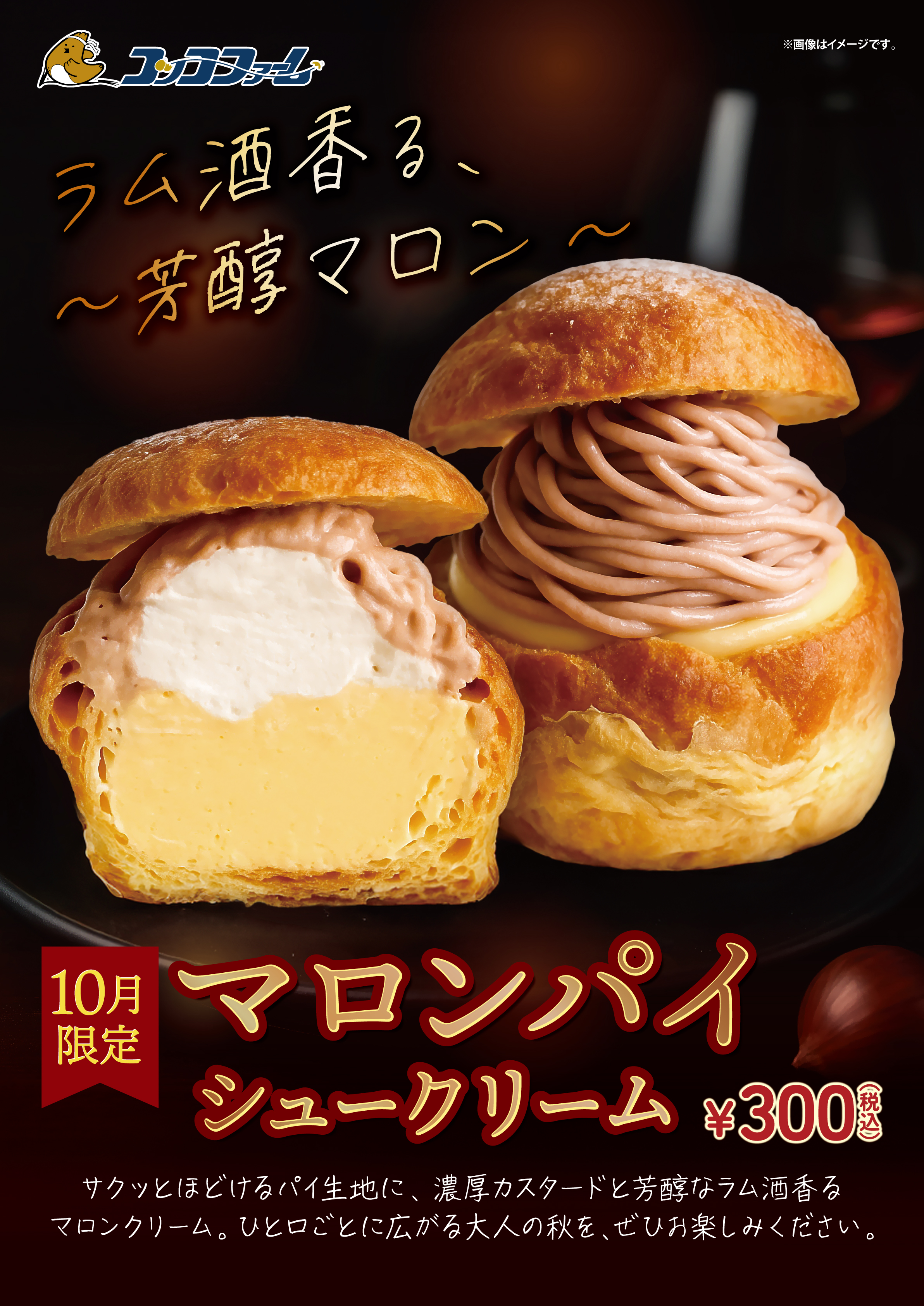 秋も深まる10月。そんな季節にふさわしい“大人の味わい”をまとった「マロンパイシュークリーム」が菓子工房に登場しました。