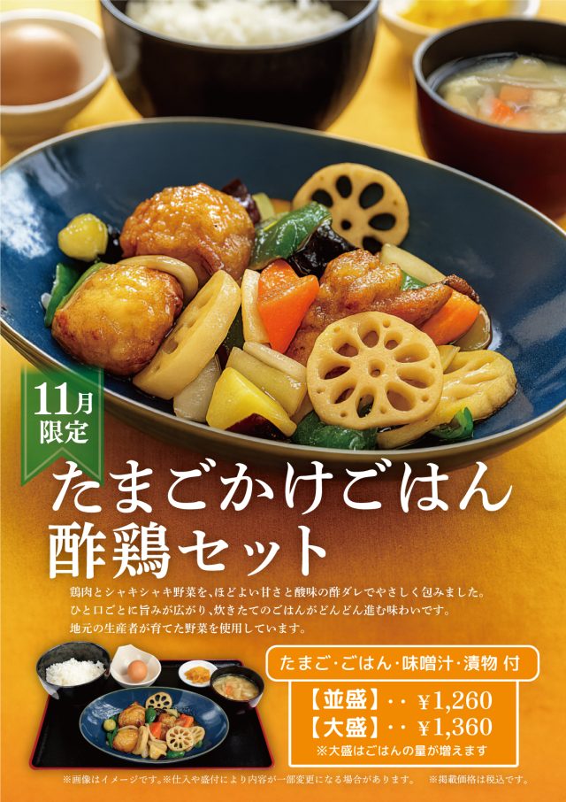 鶏肉とシャキシャキ野菜を、ほどよい甘さと酸味の酢ダレでやさしく包みました。ひと口ごとに旨みが広がり、炊きたてのごはんがどんどん進む味わいです。地元生産者が育てた野菜を使用しています。
