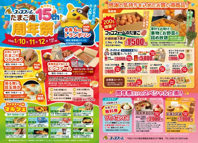 日頃のご愛顧への感謝を込めて、『たまご庵15周年祭』を開催いたします。