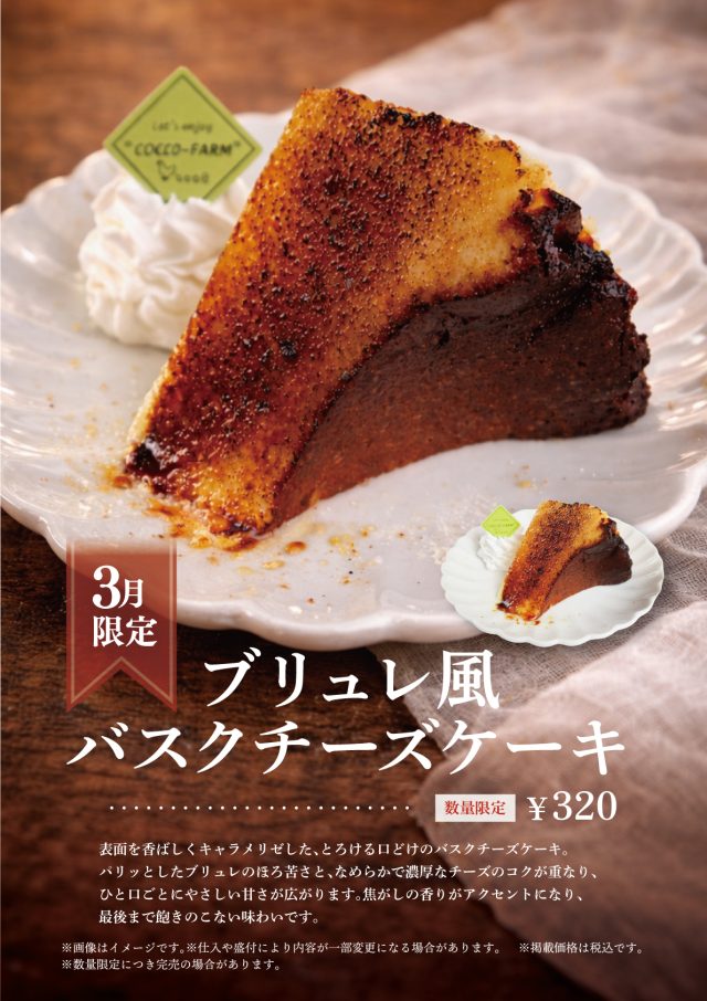 表面を香ばしくキャラメルリゼした、ブリュレ仕立てのバスクチーズケーキです。