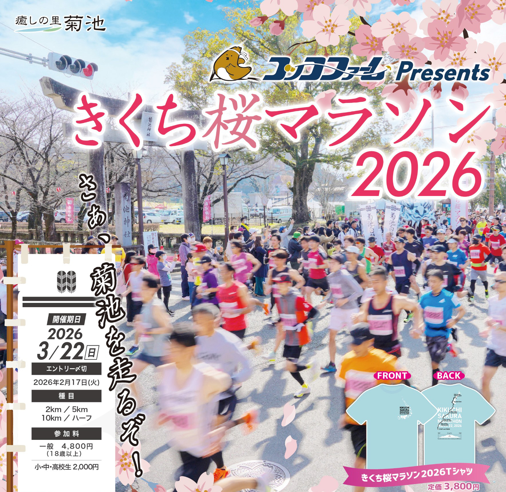 本大会は、2026年3月22日(日)、桜並木や自然豊かな景観が広がる“癒しの里きくち”を舞台に開催されます。
